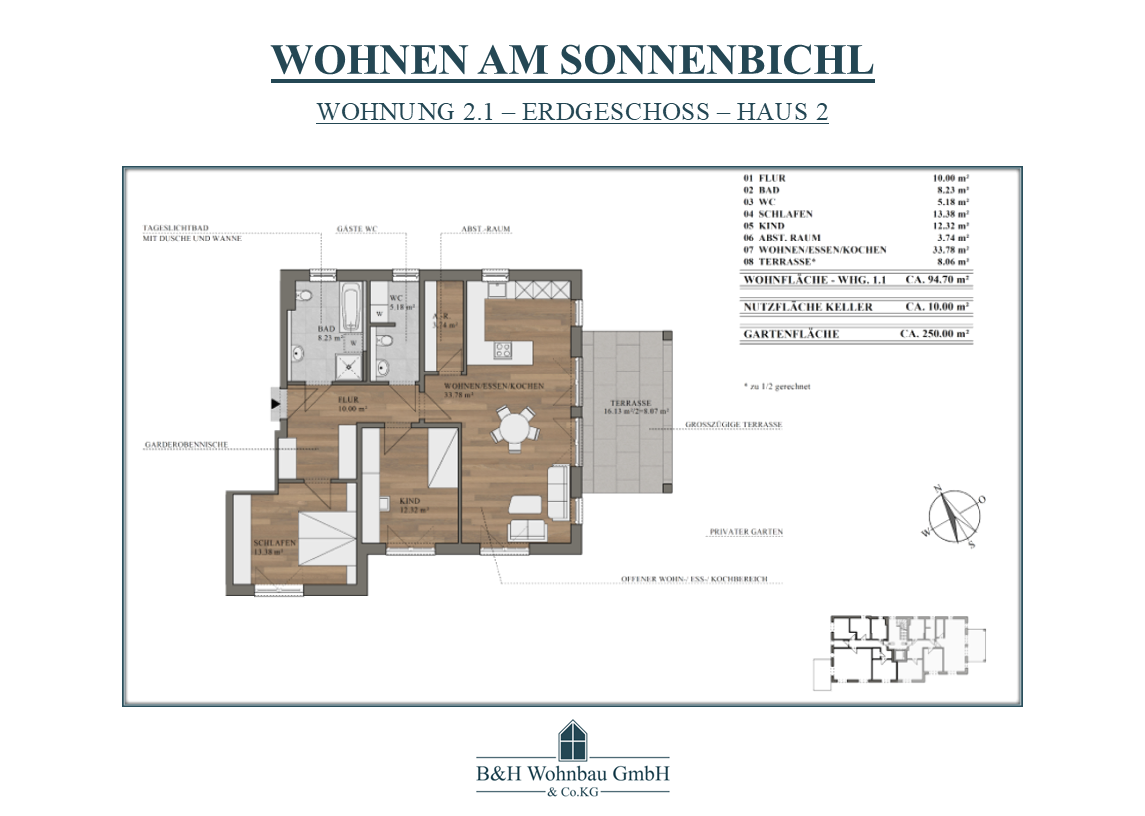 | WOHNUNG 2.1 | EG | 3 ZKB - ABST.-RAUM - WC | 94,70 m² | ca. 250,00 m² | VERKAUFT | 563.465,00€ |