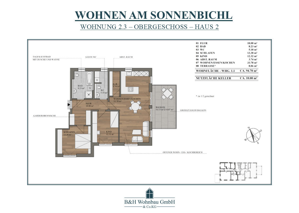 | WOHNUNG 2.3 | OG | 3 ZKB - ABST.-RAUM - WC | 94,70 m² | RESERVIERT | 568.200,00€ | |