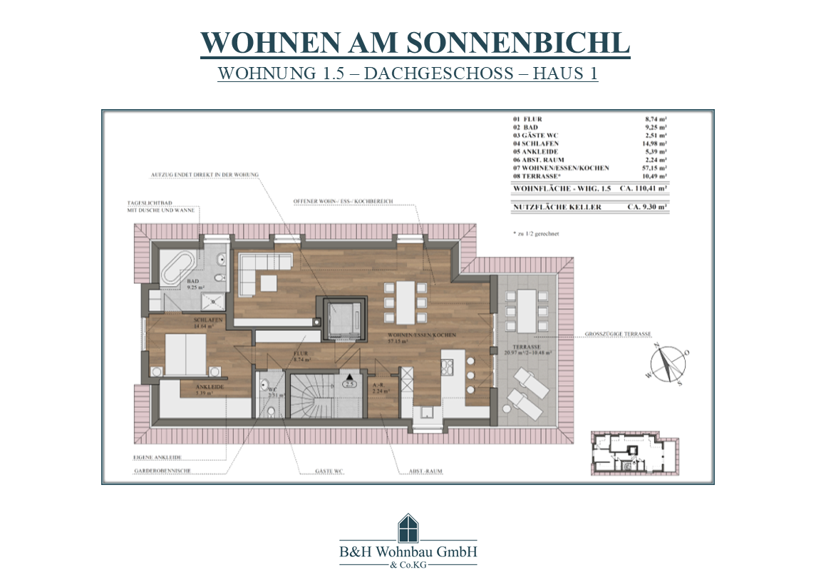 | WOHNUNG 1.5 | DG | 2 ZKB - ABST.-RAUM + WC | 110,41 m² | RESERVIERT | 690.062,50 € |