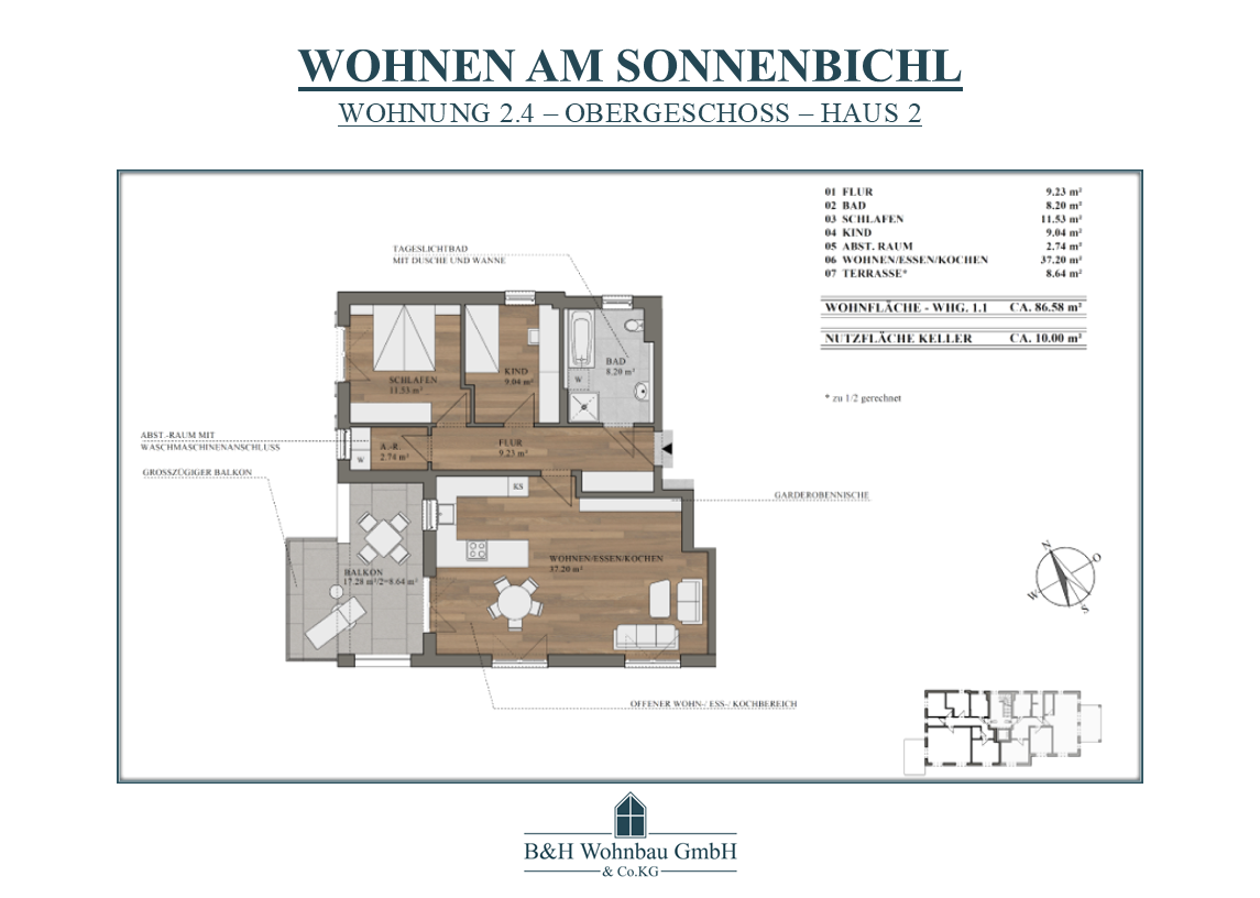 | WOHNUNG 2.4 | OG | 3 ZKB - ABST.-RAUM | 86,58 m² | VERKAUFT | 519.480,00€ | |